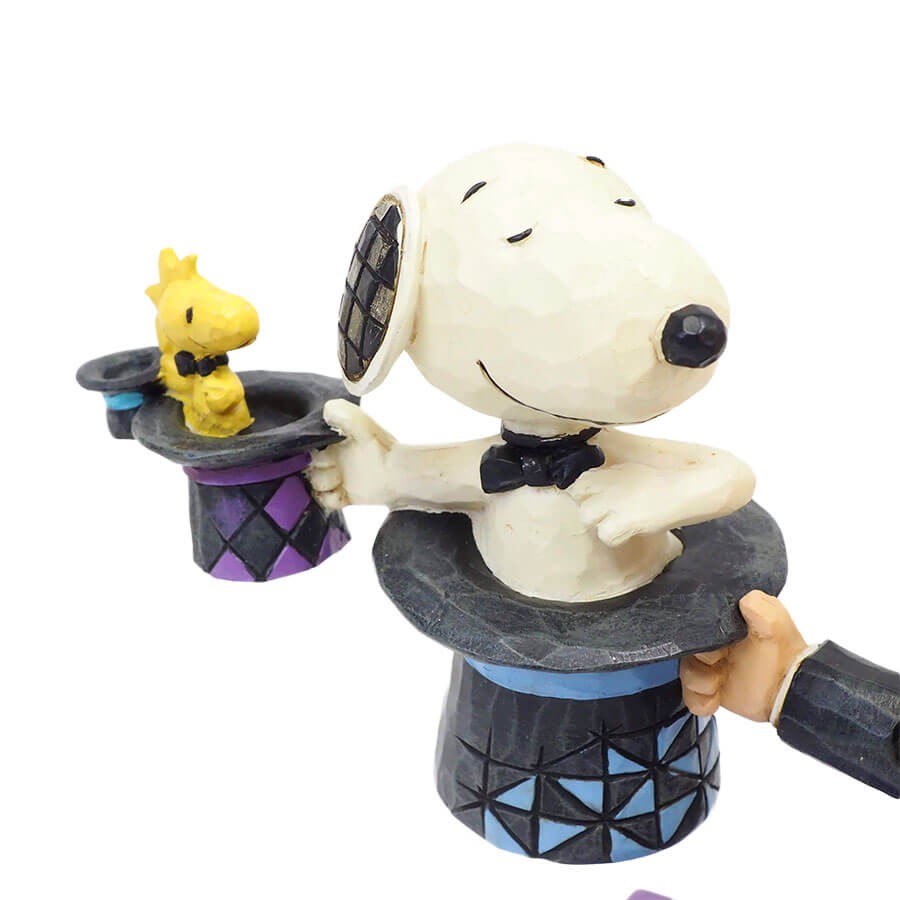 チャーリーブラウン、スヌーピー、ウッドストックたちがマジシャンとなって、シルクハットでマジックショーを行います。