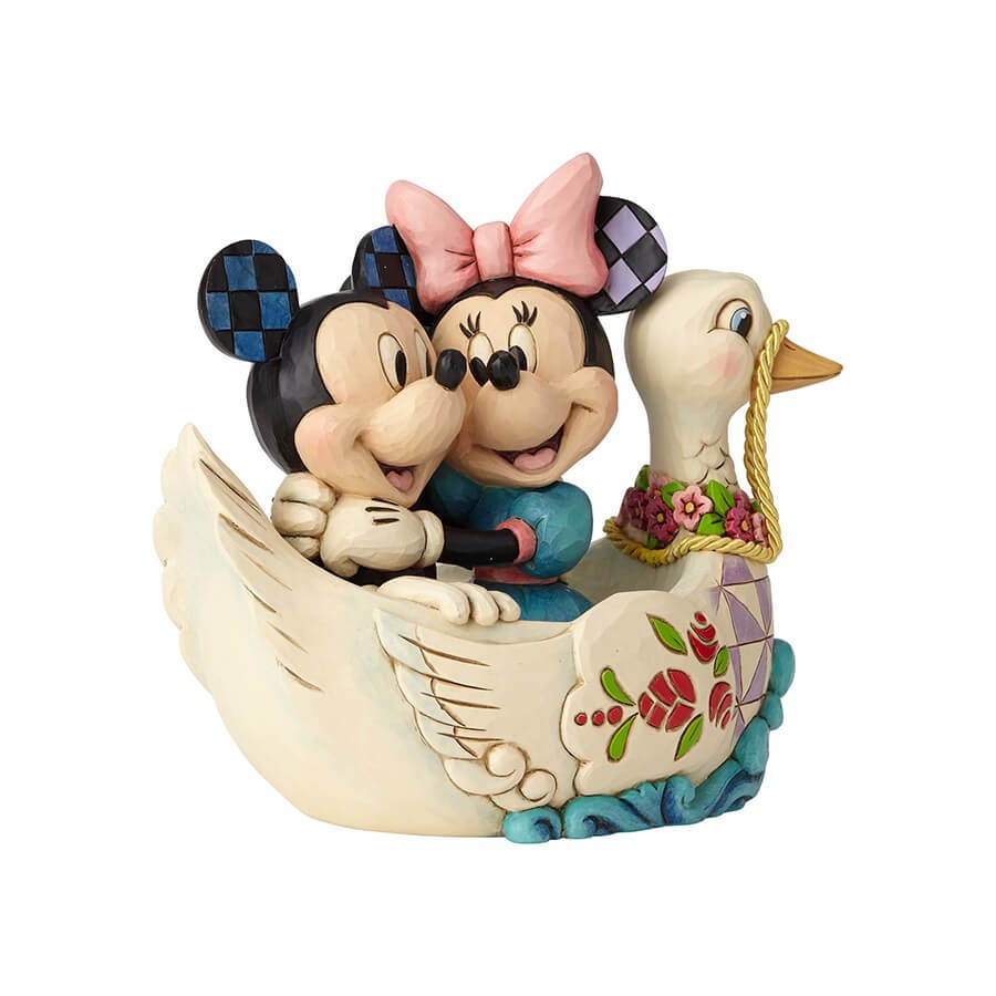 JIM SHOREが手掛けるDisney Traditionsからミッキーとミニーのフィギュアが登場。 スワン(白鳥)のボートに乗ってデートをしています。 スワンには波と花柄が彫刻されています。