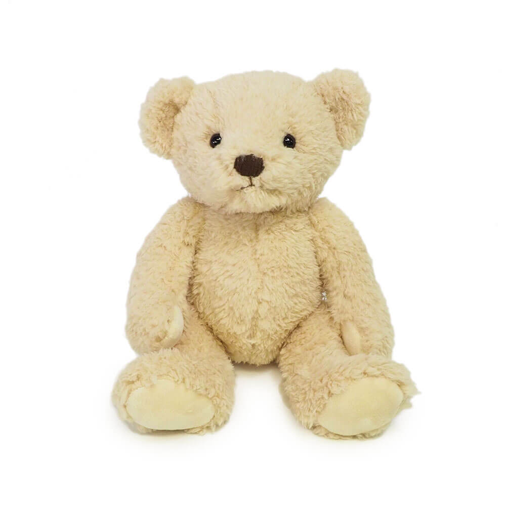 シンプルでクラシカルなテディベア Cindy(シンディー)のSサイズが登場しました。 茶色のコーデュロイ素材の鼻が特徴的です。 お尻や手足にはビーンバッグが入っているので、お座りできます。 手触りふわふわのベージュの毛並もポイントです。