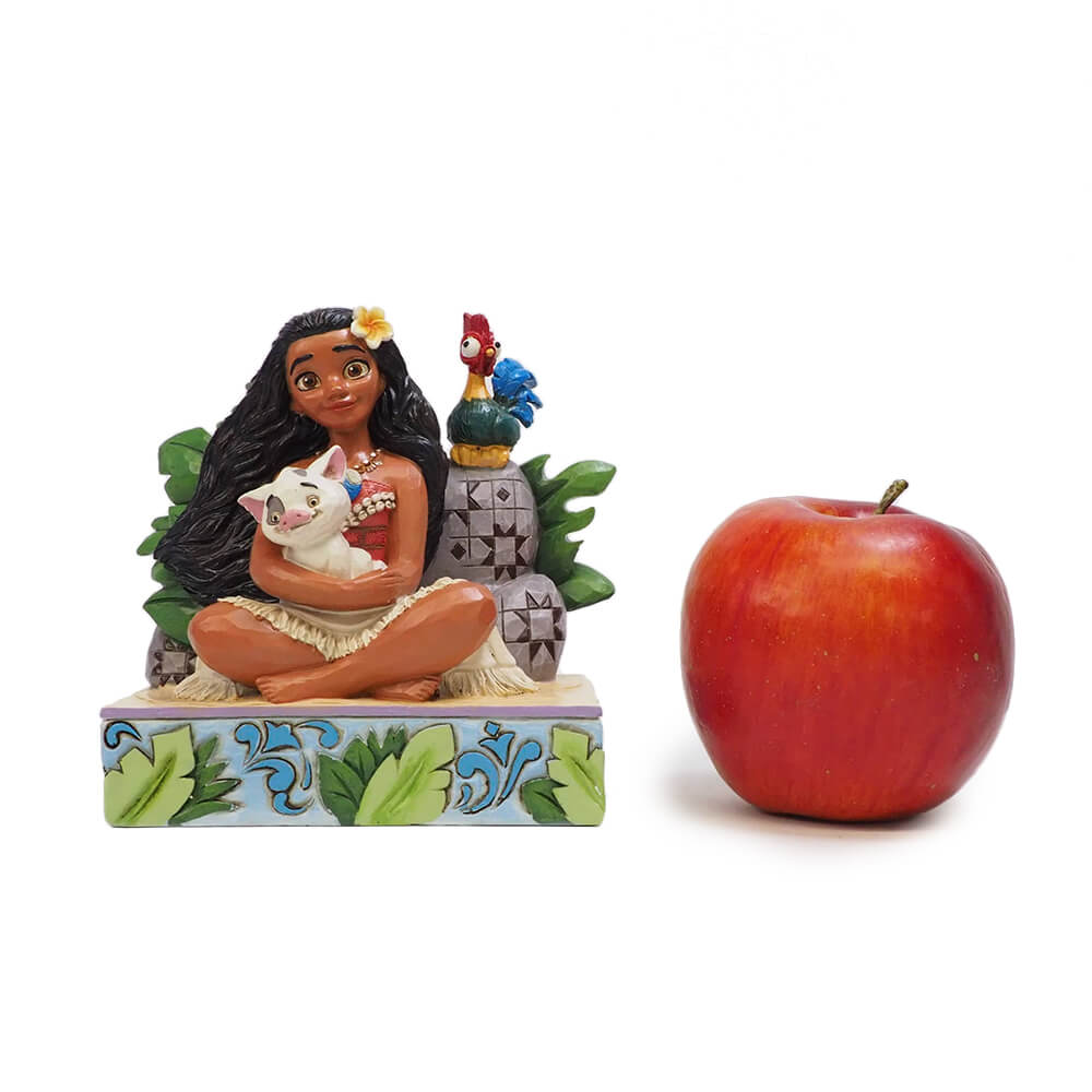 JIM SHOREが手掛けるDisney Traditionsから、映画『モアナと伝説の海』のフィギュアが登場。 ヒロインのモアナ、ペットの子ぶたのプア、ニワトリのヘイヘイが故郷のモトゥヌイでリラックスしているデザインです。 土台にはジムショアの伝統的なキルトデザインと南国風のデザインが施されており、細部へのこだわりが感じられる作品となっております。